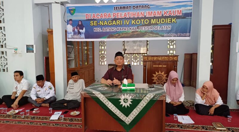 Pelatihan Imam Kaum se-Nagari IV Koto Mudiek ini dilaksanakan di Mesjid Nurul Iman Muhammadiyah dengan narasumber adalah Ketua LKAAM Pesisir Selatan Drs. Syafrizal Ucok Harapkan Pemda Pessel Anggarkan Bantuan APBD untuk Imam Kaum.