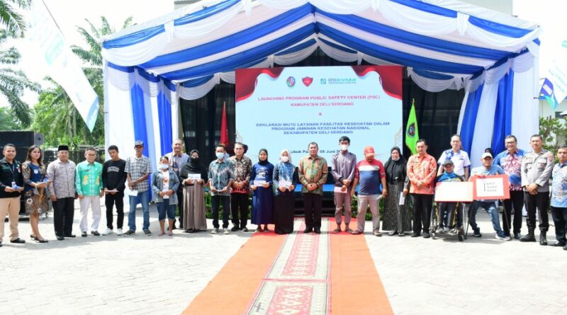 Deli Serdang, MZK News – Bupati Deli Serdang, H Ashari Tambunan melaunching Public Safety Center (PSC) Kabupaten Deli Serdang dan Deklarasi Mutu Layanan Fasilitas Kesehatan Dalam Program Jaminan Kesehatan Nasional se-Kabupaten Deli Serdang di halaman Kantor Dinas Kesehatan Deli Serdang, Jumat (9/6/2023).