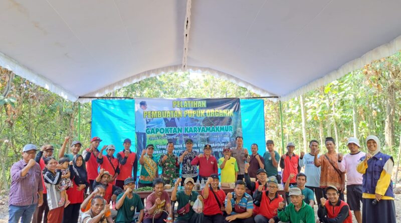 Ngawi, MZK News – Untuk mengembalikan kesuburan tanah pertanian dan mengurangi penggunaan kimia, Gapoktan Karyamakmur bekerja sama dengan BPP Sine, Bhabinkamtibmas dan Babinsa Desa Tulakan menggelar pelatihan pembuatan pupuk organik padat dan cair bertempat di Dusun Garit RT. 03/RW. 01 Desa Tulakan, Kecamatan Sine, Kabupaten Ngawi.