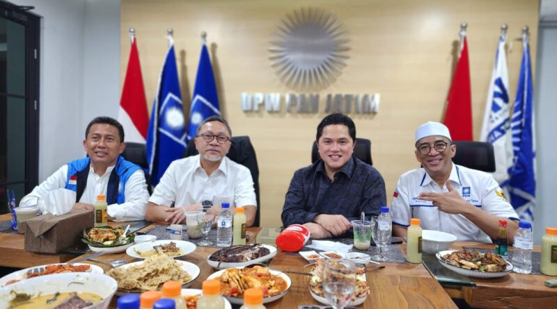 “Kita bangga akan pemain republik kita, bahkan kita hadir di sini. Artinya mendukung penuh sekaligus mampir ke kantor PAN, karena kantor PAN di Jatim ini kantornya Pak Erick juga,” tandas Zulhas.