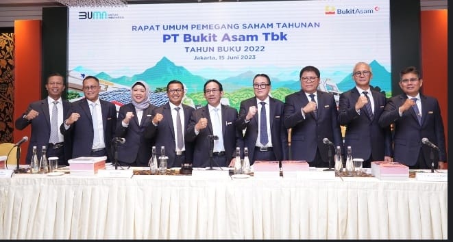 Jakarta, MZK News – PT Bukit Asam Tbk (PTBA), anggota dari Grup MIND ID, menggelar Rapat Umum Pemegang Saham Tahunan (RUPST) untuk Tahun Buku 2022 di Jakarta, Kamis (15/6/2023). Dalam RUPS tersebut, pemegang saham menyetujui dividen sebesar 12,6 triliun atau 100 persen dari laba bersih perseroan tahun buku 2022.