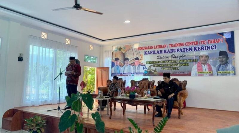 Sekretaris Daerah Kerinci Zainal Efendi menjelaskan Alhamdulillah, terima kasih atas undangannya kepada kami Pemkab Kerinci untuk menghadiri pembukaan Pemusatan Latihan/Training Center (TC) tahap I Kafilah Kabupaten Kerinci.