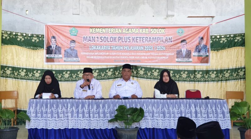 Kabupaten Solok, MZK News – Guna menyambut tahun ajaran 2023/2024, MAN 1 Solok Plus Keterampilan mengadakan lokakarya guru selama 4 hari, Senin-Kamis (19-22 Juni 2023) yang dibuka oleh Kepala Kantor Wilayah Kementerian Agama Provinsi Sumatra Barat dan diwakili oleh Kepala Kantor Kemenag Kab. Solok pada Senin pagi di Aula MAN 1 Solok PK, (19/06/23).