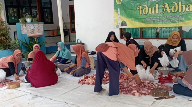 Foto: Pengurus Komite Sekolah mengemas daging kurban untuk dibagikan (Foto: IST)