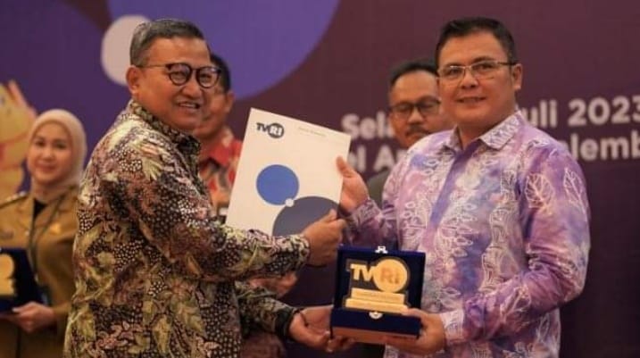 Kadis Kominfo Muara Enim Terima Plakat dan Piagam Penghargaan Mitra Terbaik dari TVRI Sumsel