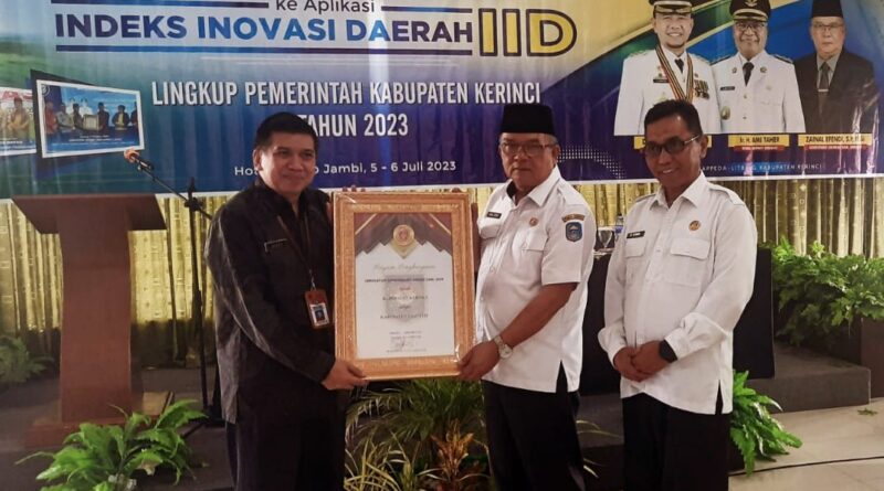 Penghargaan tersebut diserahkan Jerry Walo selaku Koordinator Inovasi Pemerintahan Dalam Negeri Badan Strategi Kebijakan Dalam Negeri Kementerian Dalam Negeri Republik Indonesia. Penghargaan tersebut merupakan penghargaan yang kedua kalinya diraih oleh Kabupaten Kerinci sejak tahun 2021.