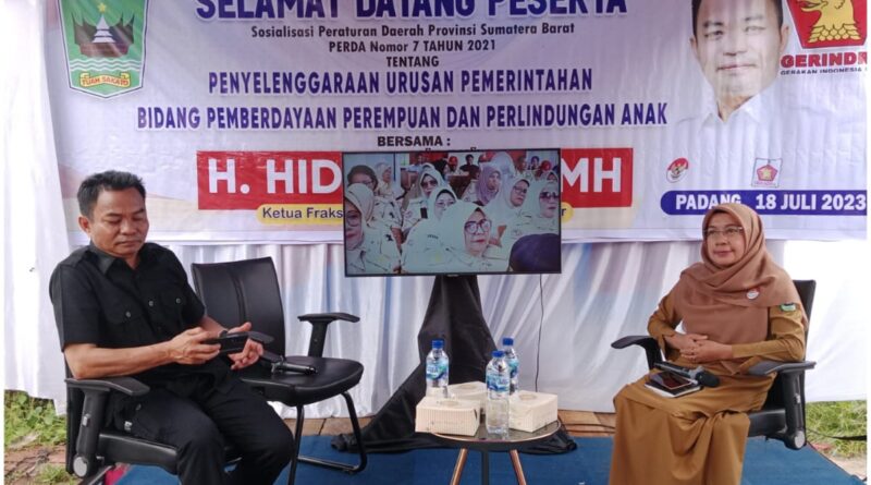 Padang, MZK News – Anggota Komisi V DPRD Sumbar dari Fraksi Gerindra, asal pemilihan Sumbar 1 Kota Padang Hidayat, melakukan sosialisasi Peraturan Daerah (Sosper) Nomor 7 tahun 2021, tentang Penyelenggaraan urusan pemerintah bidang pemberdayaan perempuan dan anak, dihadapan puluhan wartawan dan ratusan Purnawirawan Pejuang Indonesia Raya (PPIR).