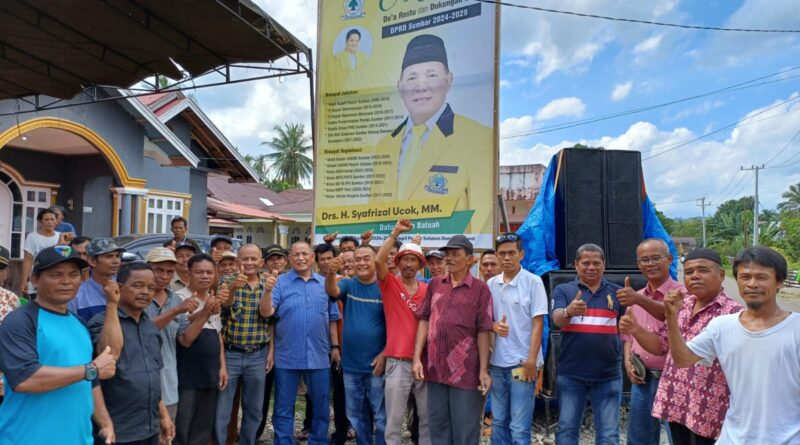 “Kami melihat sosok Pak Syafrizal Ucok sangat tepat untuk mewakili Pesisir Selatan dan Mentawai ke DPRD Provinsi Sumbar. Sosoknya diyakini akan mampu memperjuangkan infrastruktur dan pemberdayaan ekonomi masyarakat,” kata Zurianto Bobok yang didampingi oleh tokoh masyarakat Tapan Tasni Yodi, S.H.