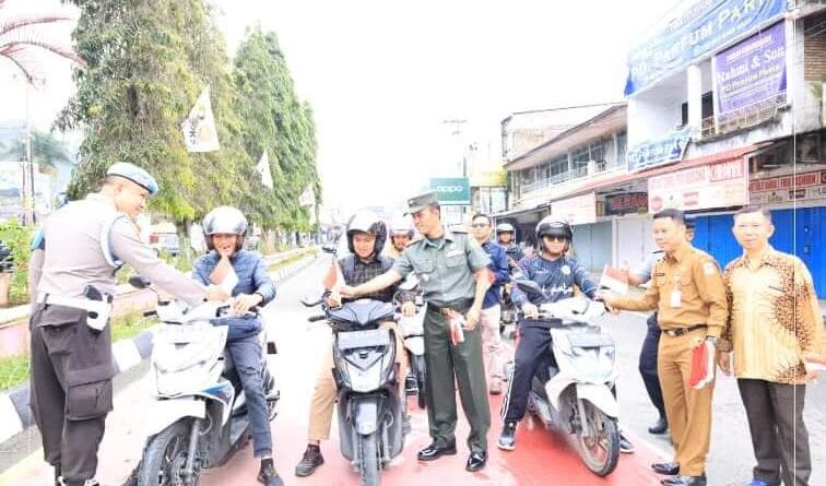 Foto: Sekda Alpian bersama Kodim Kerinci dan Polres Setempat saat membagikan Bendera Merah Putih (Foto: IST)