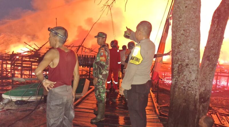 “Untuk sementara diketahui bangunan yang terbakar yakni 29 rumah, 4 barak, 4 losmen atau penginapan, Musala Al-Muhajirin, Posyandu Yayasan Asyiah, 2 kandang ayam dan 2 kandang kerbau, yang dialami oleh sebanyak 31 kepala keluarga sebagai korbannya,” terangnya.