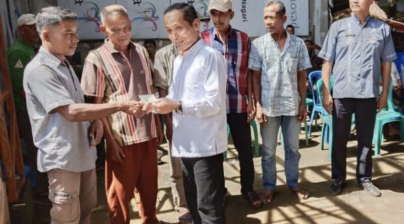Pesisir Selatan, MZK News – Anggota DPRD Provinsi Sumatra Barat, Mochlasin serahkan bantuan sebanyak 17 Long Tail 9 Pk dan BPJS Ketenagakerjaan untuk Kelompok nelayan Teluk Nibung, kenagarian api-api, Kec. Bayang, Kab Pesisir Selatan.