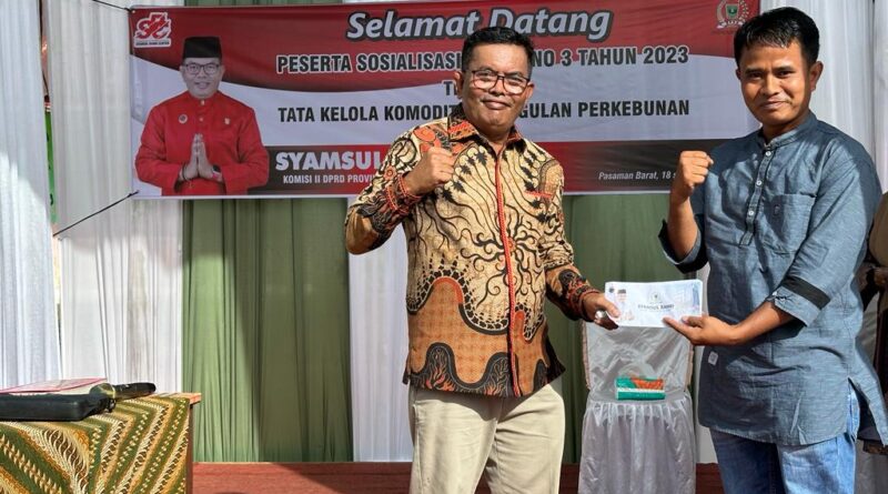 Pasaman Barat, MZK News – Anggota Komisi II DPRD Sumatra Barat Fraksi PDI-P asal pemilihan Kabupaten Pasaman dan Pasaman Barat (Pasbar) selalu mengingatkan masyarakat konstituennya dalam segala hal termasuk peraturan daerah (Perda) tentang teta kelola komoditas Unggulan Perkebunan, Provinsi Sumatra Barat.