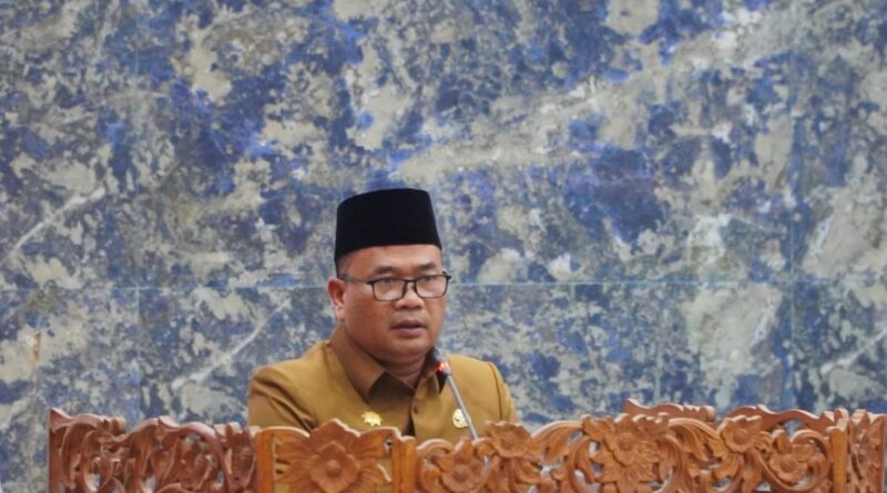 Foto: Sekdakab Deli Serdang saat membacakan pidato Bupati Deli Serdang di Rapat Paripurna DPRD Deli Serdang, Senin 28 Agustus 2023 (Foto: IST)
