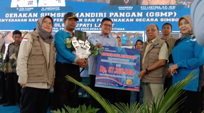 Kegiatan selanjutnya, guna mendukung program GSMP Kacab Bank Sumsel Babel secara simbolis menyerahkan CSR Tahun 2023 sebesar Rp57,300.000., kepada Pemkab Lahat yang diterima Wakil Bupati Lahat.