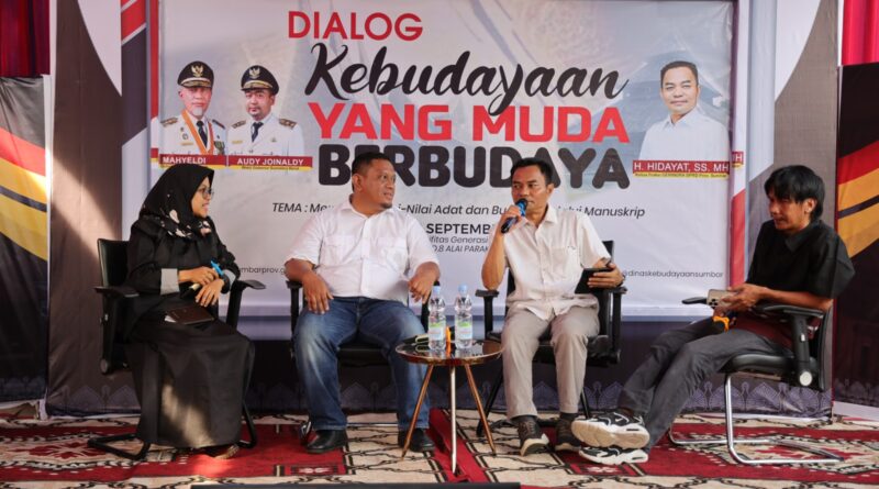 Padang, MZK News – Dinas Kebudayaan Provinsi Sumatra Barat menyelenggarakan Dialog kebudayaan dengan tema “Mengenali Nilai-nilai Adat dan Budaya Melalui Manuskrip” melalui pokir anggota DPRD Sumatra Barat, Hidayat dari Fraksi Gerindra, pada Sabtu (2/9/23), di Pusat Kreativitas Generasi Muda Kopi Pahit Hidayat, Padang, Sumatra Barat.