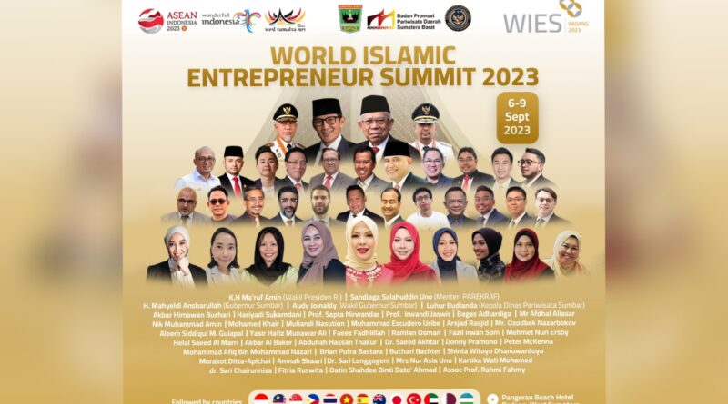 Rangkaian kegiatan WIES 2023 akan dimulai dari tanggal 6-9 September 2023. WIES merupakan iven kolaboratif pertama pengusaha Muslim yang merupakan kolaborasi dari Kementerian Pariwisata RI, Badan Promosi Pariwisata Daerah (BPPD) Sumbar dan Pemerintah Provinsi Sumatra Barat.