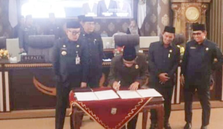 Foto: Bupati Way Kanan saat menandatangani Nota Persetujuan Pengesahan Perubahan APBD Tahun Anggaran 2023 (Foto: IST)