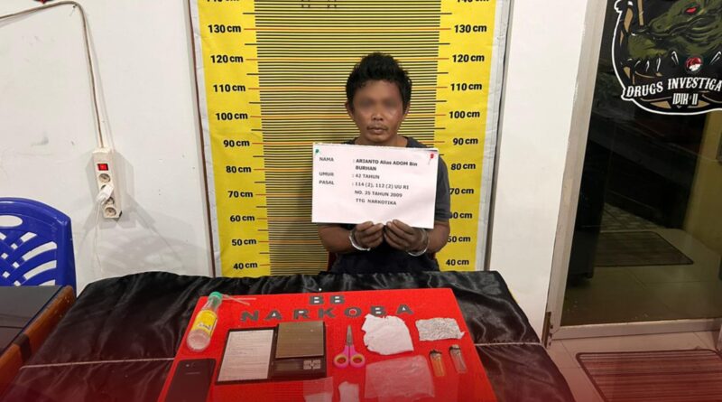 Merangin, MZK News – Tim Macan Satresnarkoba Polres Merangin berhasil mengamankan seorang tersangka yang masuk dalam Daftar Pencarian Orang (DPO) dalam perkara penyalahgunaan narkotika jenis shabu yakni A alias Dom (42) di Dusun Baru, Kecamatan Tabir, Kabupaten Merangin, Jum’at (22/09/2023).