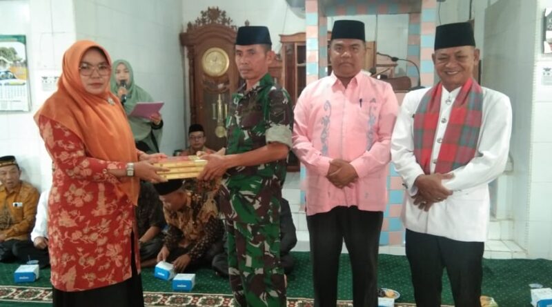 Foto: Penyerahan waqaf al-Qur’an oleh Ketua DWP Kemenag Kab. Solok kepada Satgas TMMD/N Nagari Tanjung Alai didampingi oleh Ka. Kankemenag Kab. Solok dan Wali Nagari Tanjung Alai (Foto: IST)