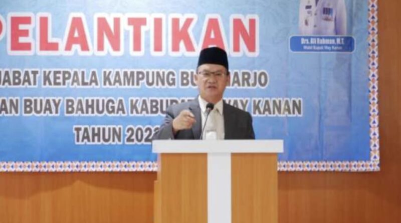 Foto: Sekda Way Kanan saat di acara pelantikan Pj. Kakam Bumi Harjo (Foto: IST)