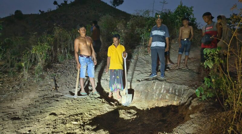 Foto: Kades Woro Gandeng Polmas dan Pemuda saat memblokir jalan yang diduga dilintasi kendaraan muatan kayu ilegal dalam kawasan (Foto: IST)