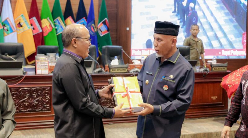 Foto: Gubernur Sumbar menerima hasil penetapan Ranperda dari Ketua DPRD Sumbar usai Paripurna (Foto: IST)