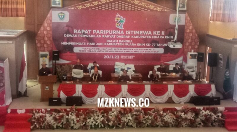 Apresiasi tersebut disampaikan Pj. Gubernur dalam Rapat Istimewa II Dewan Perwakilan Rakyat Daerah (DPRD) Kabupaten Muara Enim dalam rangka memperingati Hari Ulang Tahun (HUT) Kabupaten Muara Enim ke-77 tahun di Ruang Rapat Paripurna DPRD Kabupaten Muara Enim yang dibuka secara langsung oleh Ketua DPRD Kabupaten Muara Enim Liono Basuki, Senin (20/11/2023).