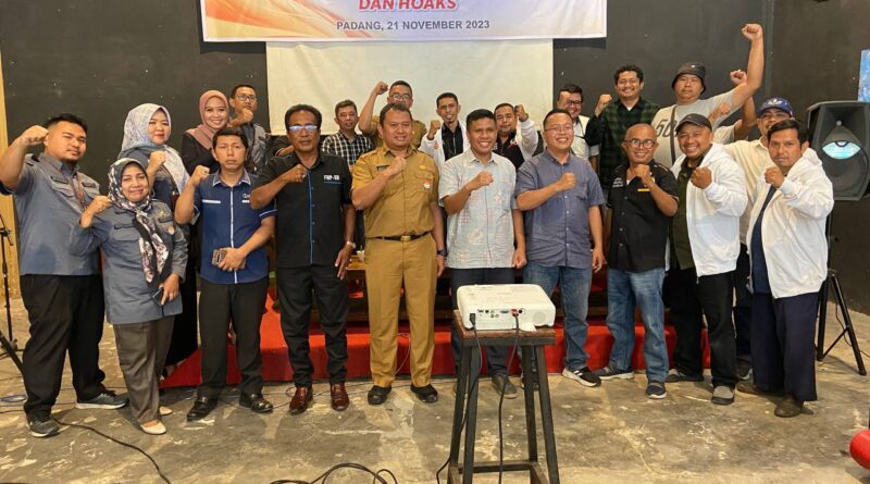 Foto: Kepala Biro Adpim Setdaprov Sumbar foto bersama dengan Narasumber dan peserta diskusi Anti Hoaks (Foto: IST)