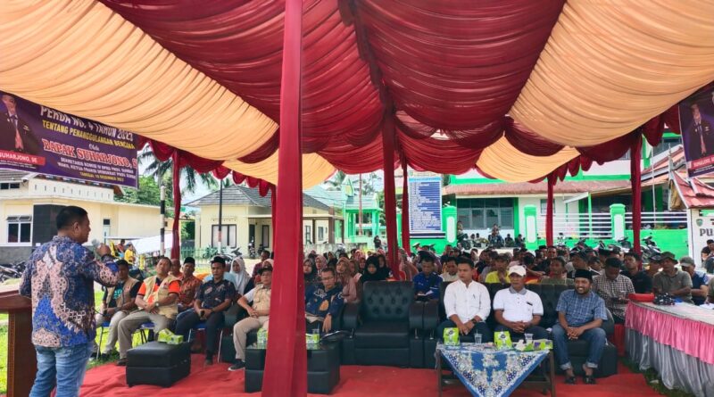 Pasaman, MZK News – Sekretaris Komisi IV DPRD Provinsi Sumatra Barat Suharjono melakukan sosialisasi Peraturan Daerah (Perda) No 4 Tahun 2023 Tentang Penanggulangan Bencana, Minggu (10/12/2023), di Jorong II Pasar Rao, Nagari Taruang-taruang Utara, Kecamatan Rao, Kabupaten Pasaman.