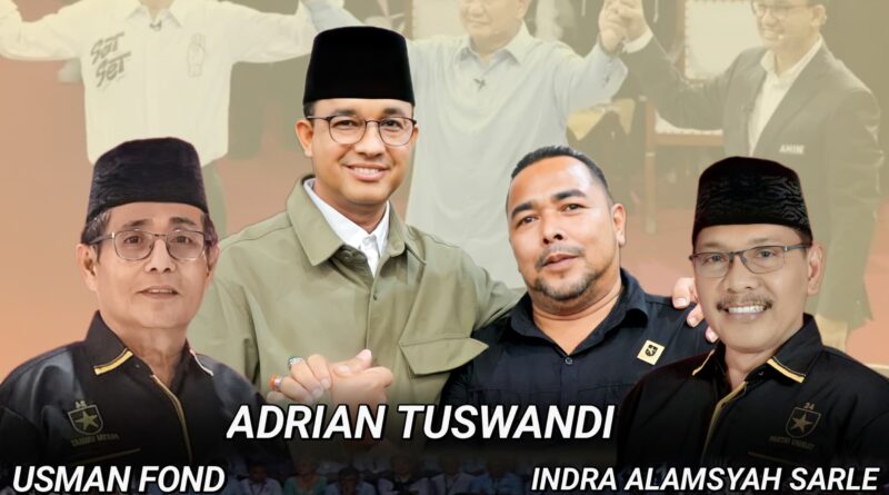 “Pak Anies Baswedan kini di Dapil Sumbar II khususnya, umumnya di seluruh Sumatra Barat telah menjadi branding dan trending topics Pilpres dan Pemilu,” ujar tokoh Pasar Usang Batang Anai Usman Fond yang juga Caleg Partai Ummat untuk DPRD Padang Pariaman.