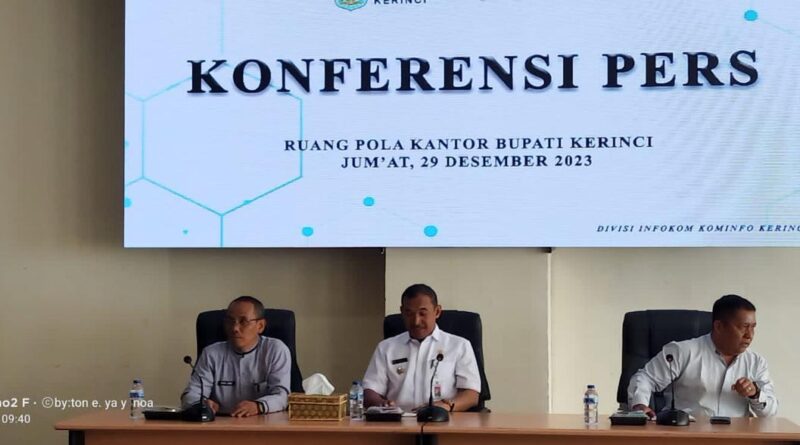 Kerinci, MZK News – Pemerintah Kabupaten Kerinci menggelar jumpa pers dengan awak media Kerinci-Sungai Penuh guna untuk memberikan klarifikasi terkait demo peserta P3K kemarin, di aula kantor Bupati Kerinci pada Jumat (29/12/23).