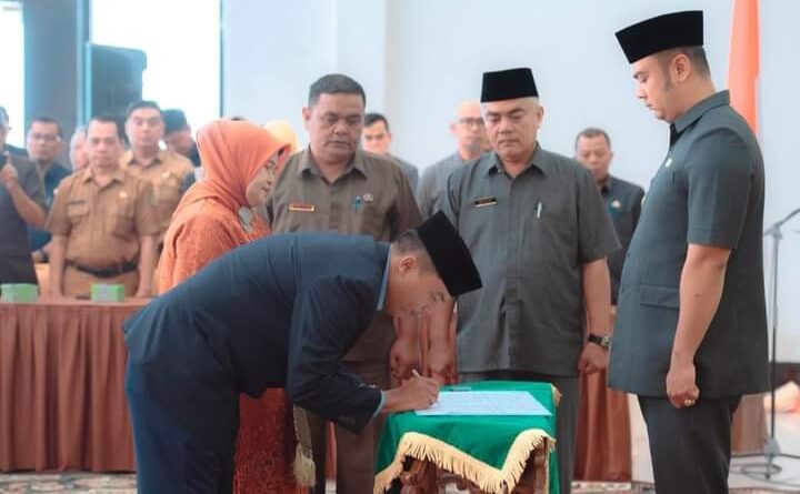 Foto: Bupati Sijunjung menyaksikan salah satu ASN tandatangani berita acara (Foto: IST)