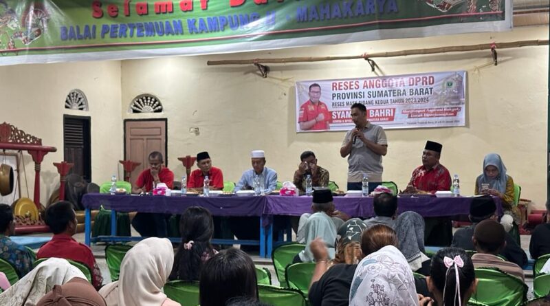 Pasbar, MZK News – Anggota Komisi II DPRD Sumatra Barat (Sumbar) dari Fraksi PDI Perjuangan, Syamsul Bahri menggelar kegiatan reses masa sidang kedua Tahun 2024 di Nagari Maha Karya, Kecamatan Luhak Nan Duo, Kabupaten Pasaman Barat, Jum’at (27/1/2024).