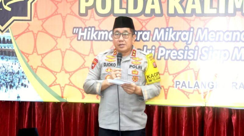 Palangka Raya, MZK News – Polda Kalimantan Tengah (Polda Kalteng) menggelar peringatan Isra Mikraj Nabi Besar Muhammad SAW, 1445 H/2023 M, di Masjid Baitus Syuja, Jl. Tjilik Riwut Km. 1, Mapolda setempat, Rabu (7/2/2024) pagi.