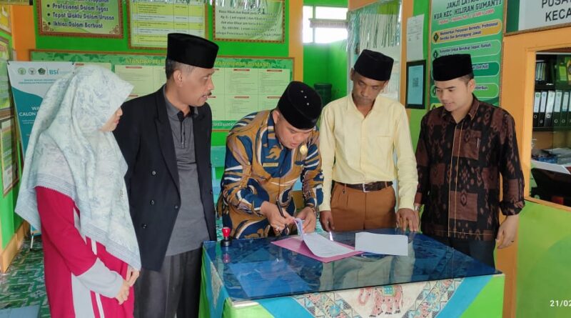 Foto: Kepala KUA didampingi oleh penyuluh Agama Kecamatan Hiliran Gumanti menandatangani MoU dengan Kepala Sekolah SD Kec. Hiliran Gumanti (Foto: IST)