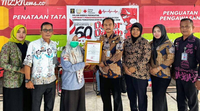 Muara Enim, MZK News – Lapas Muara Enim menerima penghargaan dari Palang Merah Indonesia (PMI) Kabupaten Muara Enim, Jumat (08/09/2024).