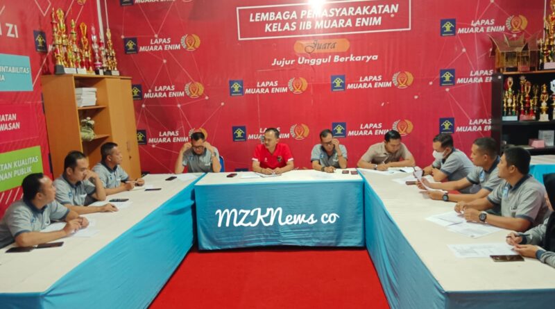 Muara Enim, MZK News – Capai Target kinerja, Ka. Lapas Muara Enim memimpin Rapat Evaluasi yang berlangsung di ruang rapat Lapas Muara Enim, Sabtu (16/03/2024).