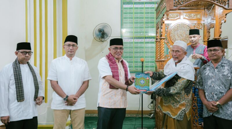 Foto: Ketua DPRD Sumbar saat menyerahkan bantuan Alquran untuk Masjid Arsyad Nankodok (Foto: IST)