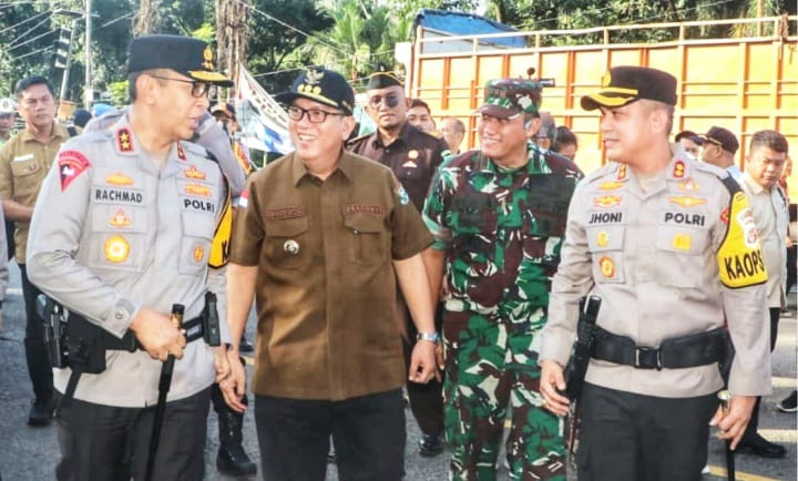 Foto: Pj. Bupati Muara Enim bersama Kapolres, Dandim 0404/Muara Enim saat mendampingi Kapolda Sumsel melakukan Pos Pelayanan Mudik Lebaran Tahun 2024 (Foto: IST)