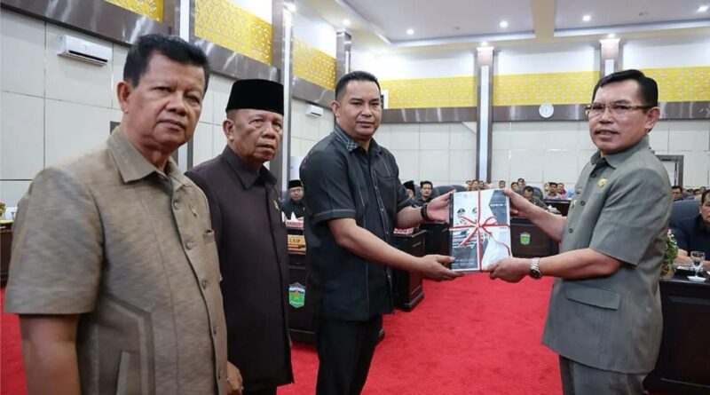 Foto: Walikota Sungai Penuh menyerahkan berkas kepada DPRD Sungai Penuh dalam Paripurna I Masa Persidangan III Tahun 2024 (Foto: IST)