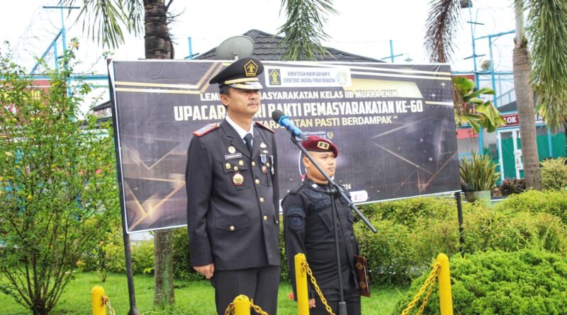 Muara Enim, MZK News – Lapas Muara Enim melaksanakan Upacara dalam memperingati Hari Bhakti Pemasyarakatan Kemenkumham RI ke-60 Tahun 2024 yang berlangsung di Lapangan Lapas Muara Enim. Sabtu (27/04/2024).