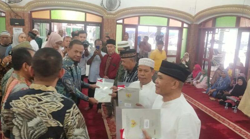 Foto: Dirjen PHPT saat menyerahkan sertifikat wakaf kepada pengurus masjid dan TPU (Foto: IST)