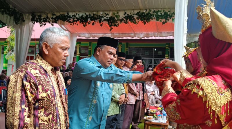 Foto: Penyambutan Ka. Kankemenag Kab. Solok oleh siswa dan warga madrasah di halaman MTsN 6 Talang Babungo (Foto: IST)