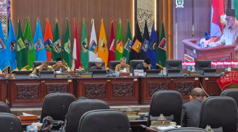 Padang, MZK News – DPRD Sumbar menggelar rapat paripurna dengan agenda Penetapan Rekomendasi DPRD Terhadap Laporan Keterangan Pertanggung jawaban (LKPJ) Kepala Daerah Tahun 2023 di ruang sidang utama kantor DPRD Sumbar, Selasa (21/5/2024).