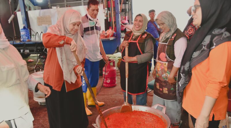 Ummi juga mengunjungi posko induk di Rumah Dinas Bupati Tanah Datar didampingi juga oleh Ketua LKKS Kab. Tanah Datar, Lise Eka Putra dan bersama-sama menyapa para relawan yang sedang sibuk mempersiapkan masakan yang akan dibagikan pada korban banjir ini.