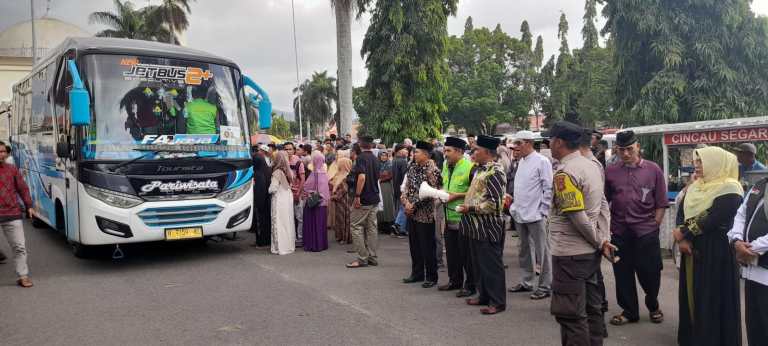 Ka. Kankemenag juga menyebutkan, dalam acara pelepasan diisi juga dengan tausiyah yang disampaikan oleh Buya H. Syahrul Wirda, M.M dan dihadiri oleh segenap pejabat daerah.