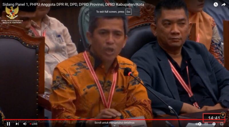 Setelah pembacaan permohonan yaitu pembacaan jawaban oleh pihak termohon yaitu KPU RI. Dalam pembacaan jawaban termohon telah disampaikan alat bukti, selanjutnya juga telah disampaikan keterangan dari pihak terkait serta keterangan dari Bawaslu selaku pihak pemberi keterangan.