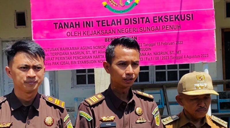 “Ada tiga lokasi sudah kita sita eksekusi, yaitu 2 harta benda di Koto Lebu dan 1 lokasi tanah di Desa Sungai Jernih, milik terpidana Nasrun,” ujar Yogi Purnomo Kasubsi Tipidkor Kejaksaan Negeri Sungai Penuh.