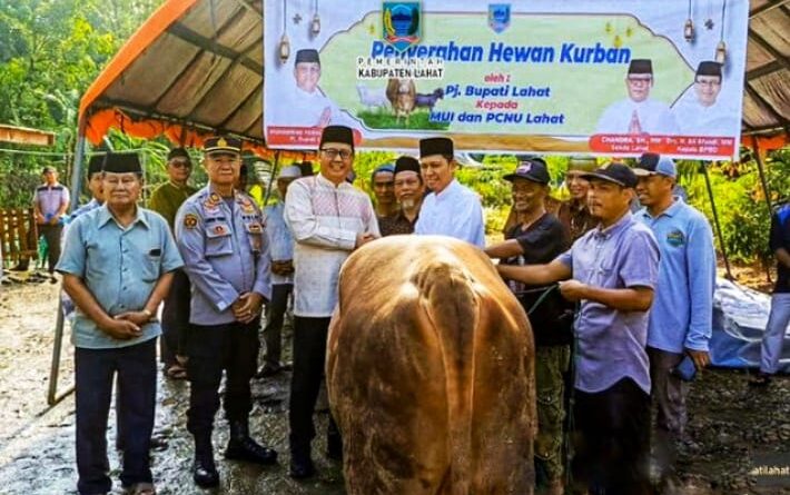 Hewan kurban tersebut diterima oleh Ketua PCNU Kab. Lahat, Drs. H. Napikurrahman, M.M., dan Ketua MUI Kab. Lahat, KH. Khusnuddin Karim Al-Hafidz.