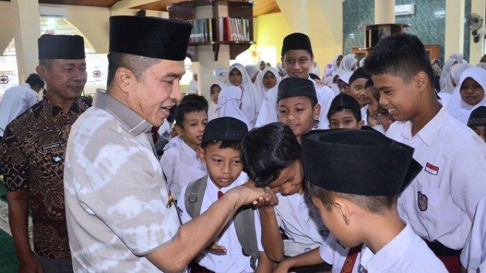 Foto: Ekos Albar sedang menyalami Siswa di Padang (Foto: IST)